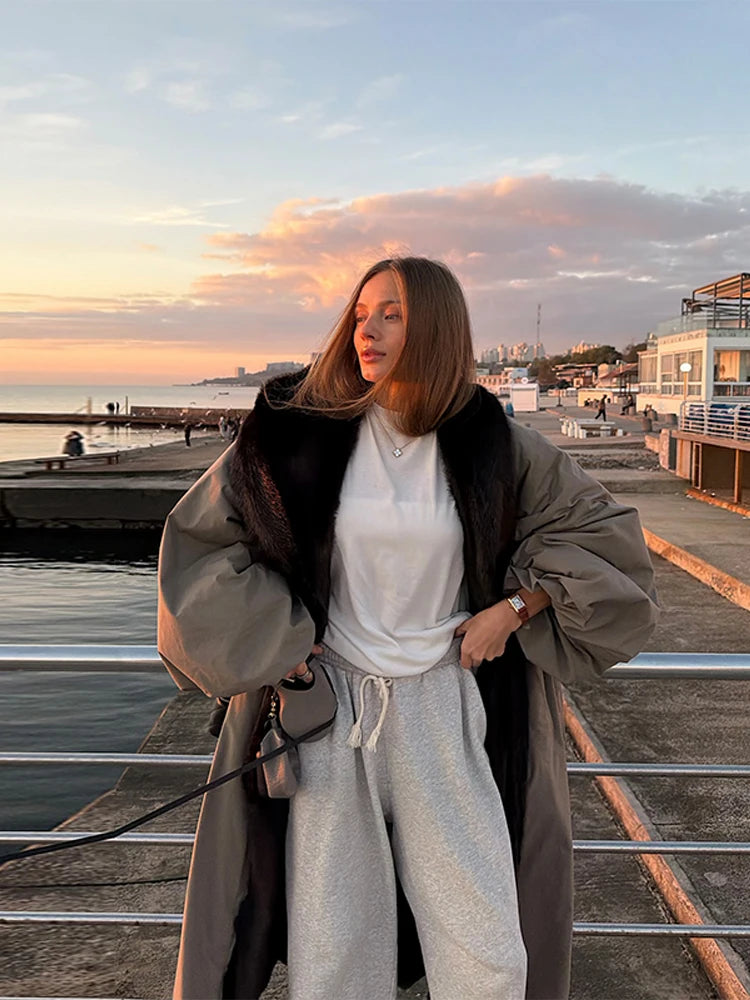 Women's Fashion Faux Fur Belt Long Warm Jacket Eye-catching Mature Comfortable Clothing 2025 Winter Autumn Chic Lady Outfit