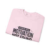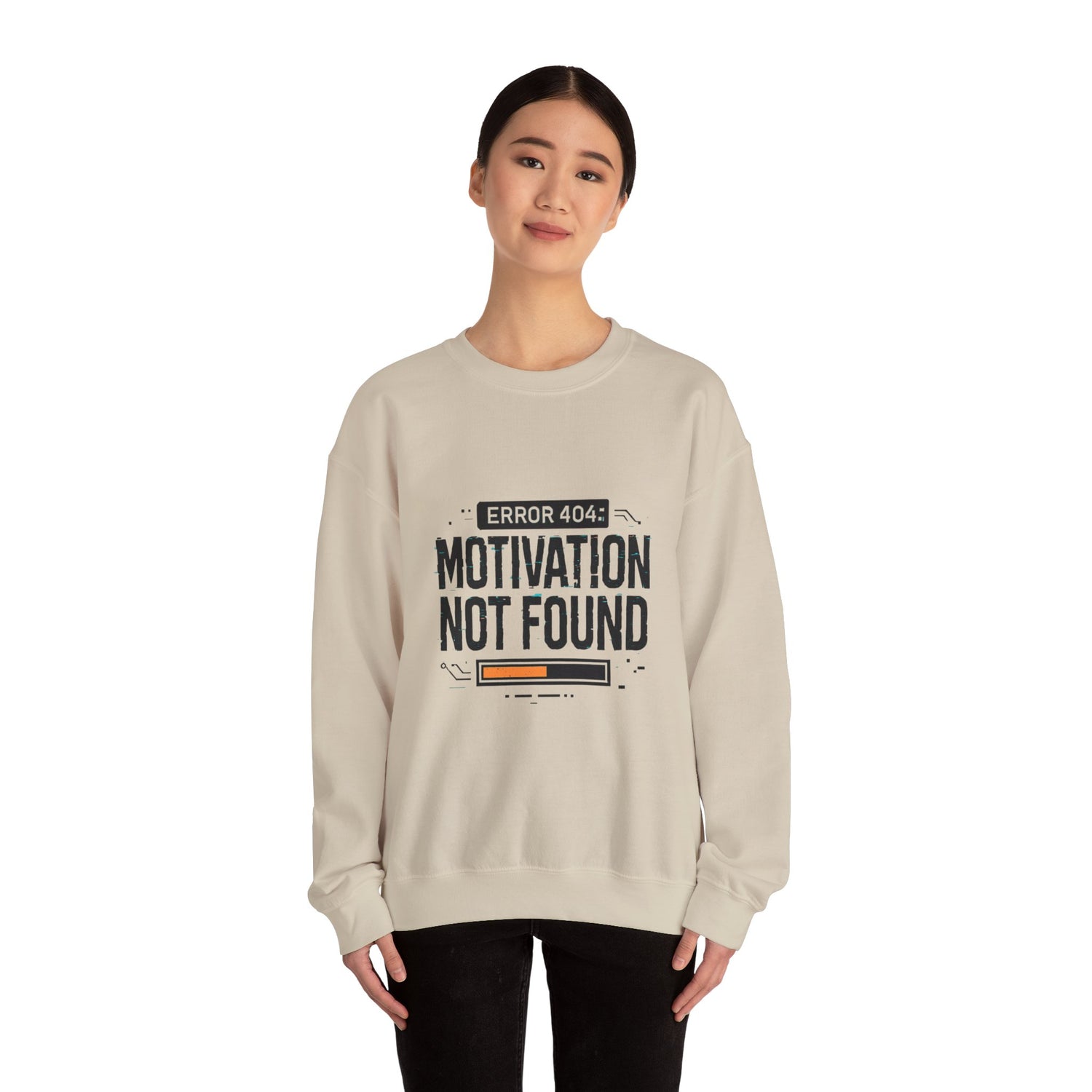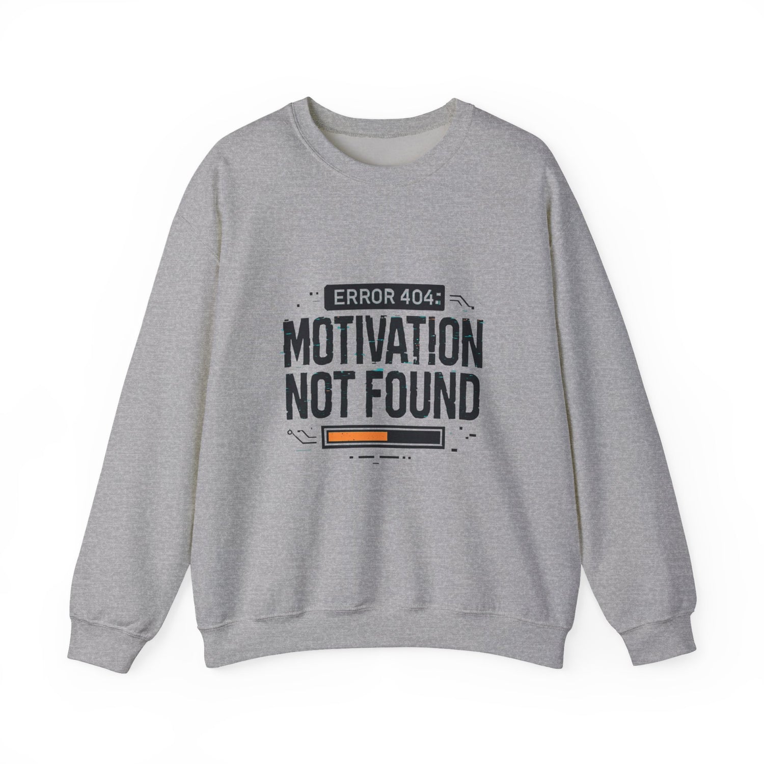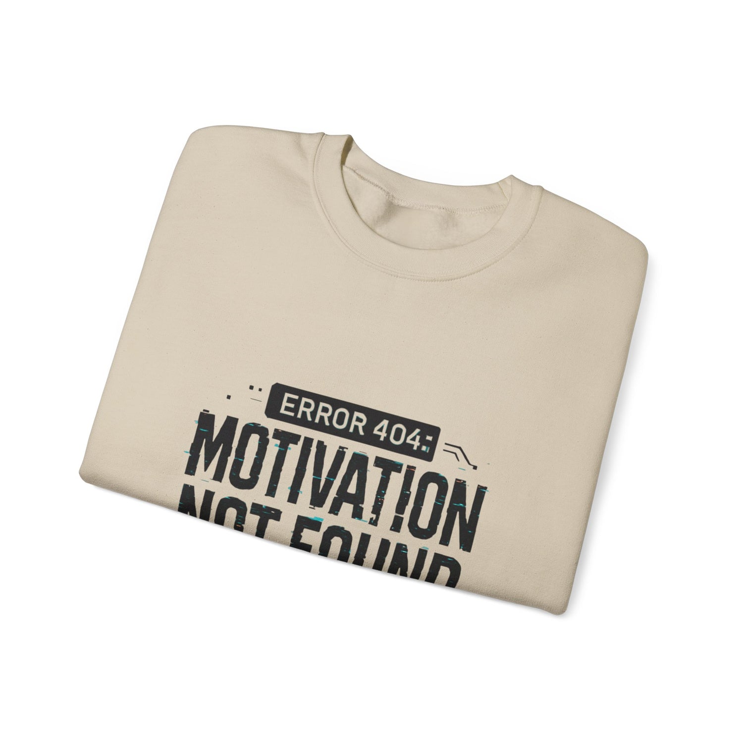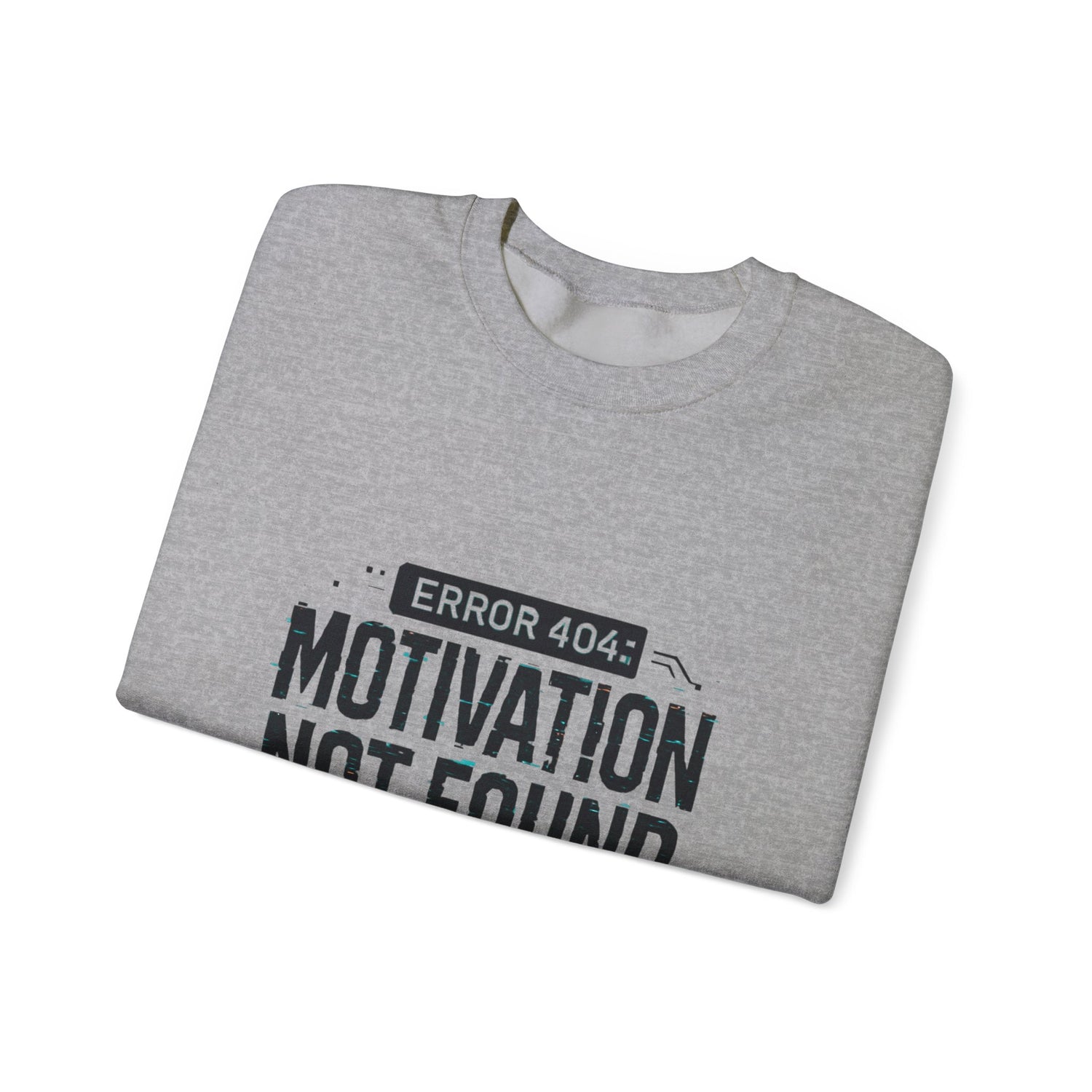Crewneck Sweatshirt — "Error 404: Motivation Not Found" Graphic