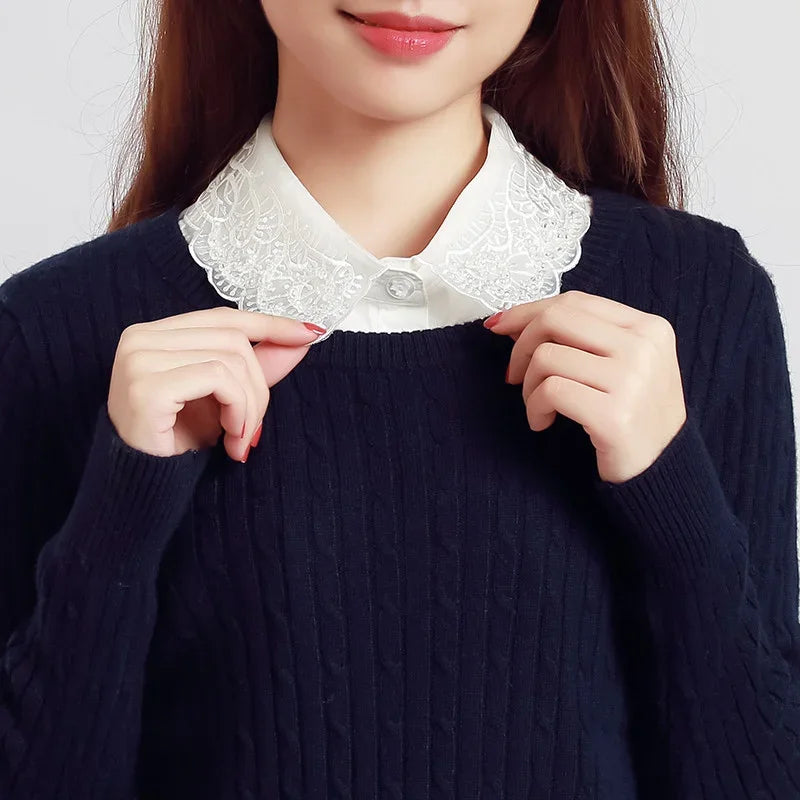 Fashion 2025 Front Tie White Fake Collar for Women Stand Detachable Collar Fake Girls Vintage Lace Ladies False Blouse Collar